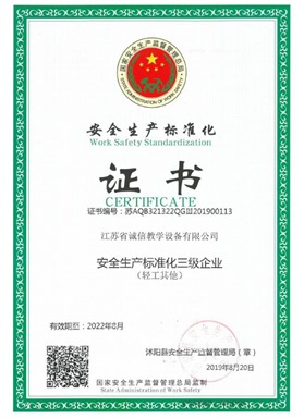 江蘇省誠信教學設備有限公司成立于2003年,是一家專注教學設備研究開發(fā)、生產(chǎn)制造、銷售服務為一體的綜合性教育、服務型企業(yè),是江蘇省教育設備行業(yè)協(xié)會會員單位、中國教育裝備行業(yè)協(xié)會會員單位,公司先后通過ISO9001國際質(zhì)量管理體系認證、IS14001國際環(huán)境管理體系認證、OHSAS18001職業(yè)健康安全管理體系認證。數(shù)十年的激勵前行鑄就企業(yè)優(yōu)質(zhì)的產(chǎn)品品質(zhì)和服務質(zhì)量。